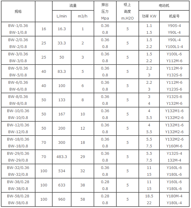 BW保溫夾套泵技術(shù)參數(shù):