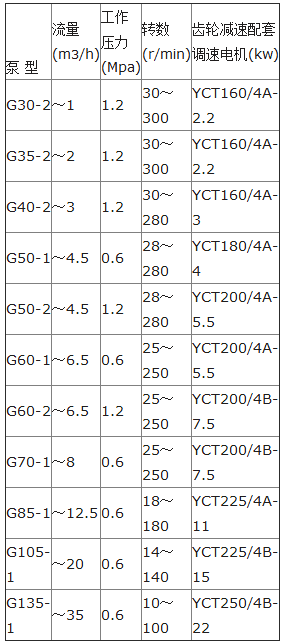 單、雙級(jí)水煤漿工作泵的性能參數(shù)