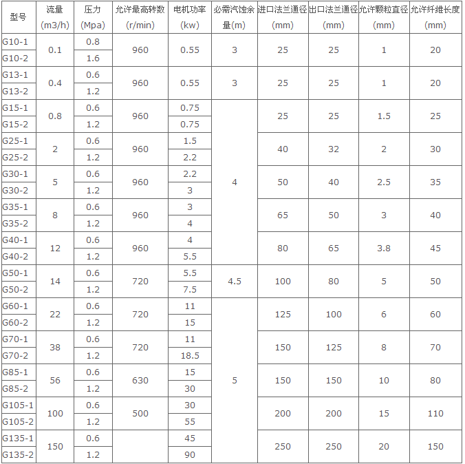 2、對于不同的介質、不同的轉速,性能參數(shù)都將變化,其流量值與濃度、粘度成反比,與轉速成正比;