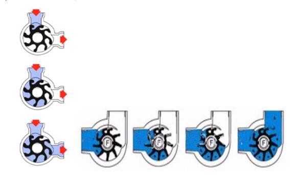 ② 當(dāng)撓性葉片旋轉(zhuǎn)時(shí),液體由泵腔吸入部被帶入排出部。